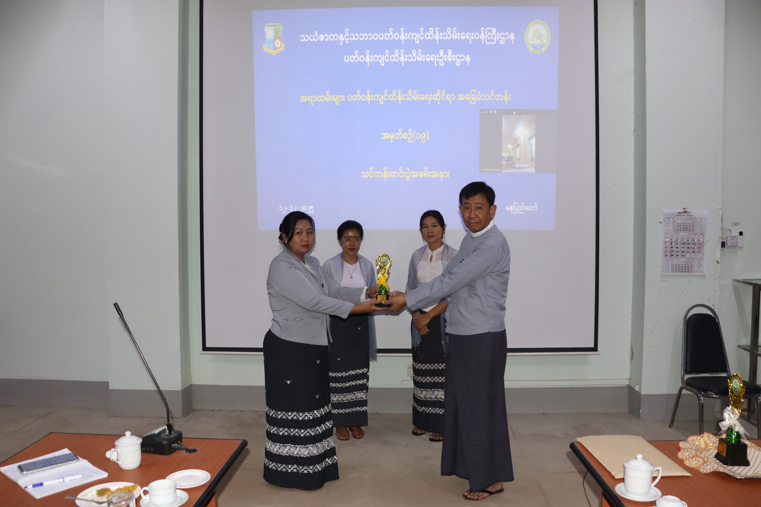 ဆက်လက်၍ ညွှန်ကြားရေးမှူးချုပ်မှ စာပေထူးချွန်ဆု ရရှိသူများအား ဆုများချီးမြှင့်ခဲ့ပြီး ဒုတိယညွှန်ကြားရေးမှူးချုပ်မှ သင်တန်းသား/သူများအား သင်တန်းဆင်းလက်မှတ်များ ပေးအပ် ချီးမြှင့်ခဲ့ပါသည်။ ထို့နောက် သင်တန်းသား/ သူများကိုယ်စား သင်တန်းသား(၁) ဦးမှ ကျေးဇူးတင်စကား ပြန်လည်ပြောကြားခဲ့ပြီး အမှတ်တရ စုပေါင်းမှတ်တမ်းတင်ဓာတ်ပုံများ ရိုက်ကူးခဲ့ကြပါသည်။ အခမ်းအနားကို ညနေ (၁၅:၃၀) နာရီအချိန်တွင် ရုပ်သိမ်းခဲ့ပါသည်။